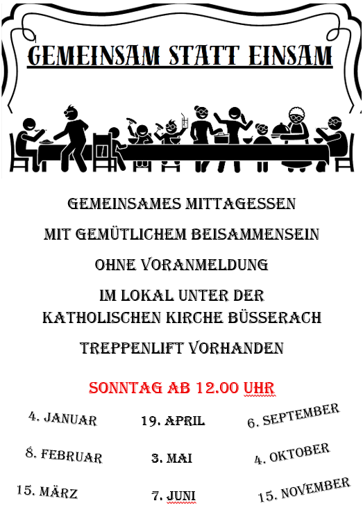 Mittagstische Gemeinde, jeweils ab 11.30 Uhr (organisiert durch die Alterskommission)